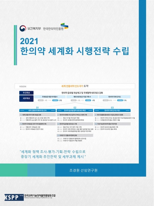 한의약 세계화 시행전략 수립 관련링크 페이지 정보 작성일22-03-03 13:13 조회6,164회 본문 한의약 정책의 글로벌 역량 강화를 위한 정책 조사 및 대안 제시 이전글 다음글 목록