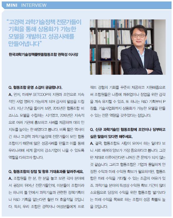 과학기술인협동조합 사례집 관련링크 http://www.setcoop.net/ [관련링크] 페이지 정보 작성일17-01-10 13:02 조회7,138회 본문 미래창조과학부 과학기술인협동조합지원센터(www.setcoop.net)의 협동조합 운영사례 및 보도자료 이전글 다음글 목록